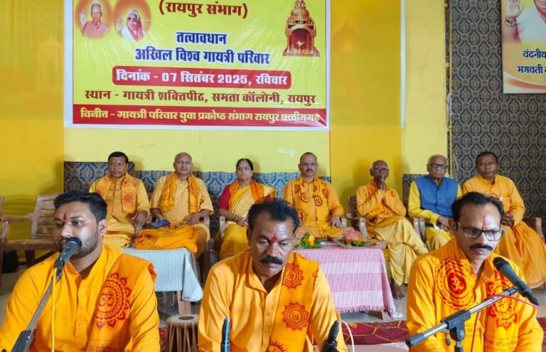 रायपुर। अखिल विश्व गायत्री परिवार की संस्थापिका माता भगवती देवी शर्मा की जन्मशताब्दि एवं संस्थापक पंडित श्रीराम शर्मा आचार्य जी...
