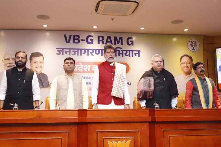 रायपुर। भारतीय जनता पार्टी केप्रदेश कार्यालय में विकसित भारत जी-राम-जी जनजागरण अभियान को लेकर प्रदेशस्तरीय कार्यशाला आहूत की गई। राज्यसभा...