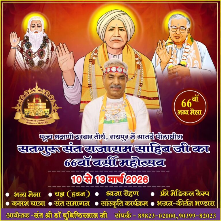 रायपुर। अंतरराष्ट्रीय मानवता की सेवा और भारतीय सनातन संस्कृति के प्रतीक 317 वर्ष प्राचीन आस्था केंद्र पूज्य शदाणी दरबार तीर्थ,...