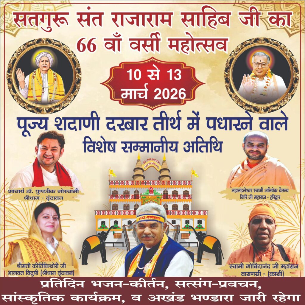 शदाणी दरबार में 10 से 13 मार्च तक 66वां वर्सी महोत्सव, प्रवचन, मेगा मेडिकल कैंप और सेवा कार्यक्रम होंगे आयोजित
