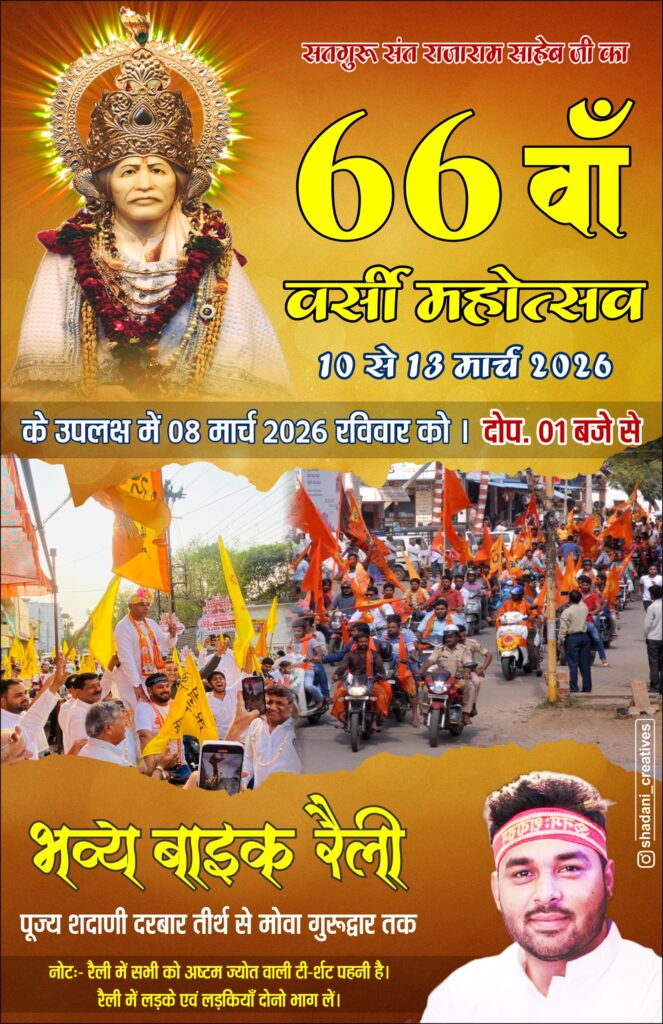 श्रद्धालुओं में जागरूकता और उत्साह बढ़ाने के लिए 8 मार्च को दोपहर 1 बजे शदाणी दरबार तीर्थ से विशाल बाइक रैली निकाली जाएगी, जो शहर का भ्रमण करते हुए मोवा स्थित गुरुद्वारे के पास समाप्त होगी।