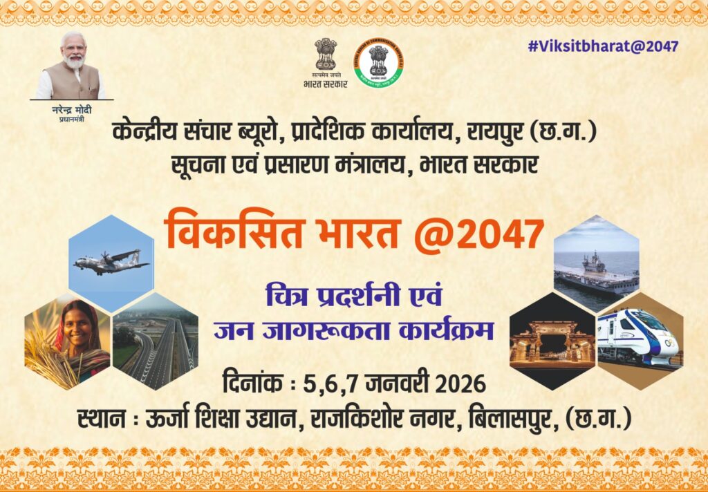 बिलासपुर में 5 जनवरी से आयोजित होगा तीन दिवसीय ‘विकसित भारत @2047’ जागरूकता कार्यक्रम एवं चित्र प्रदर्शनी