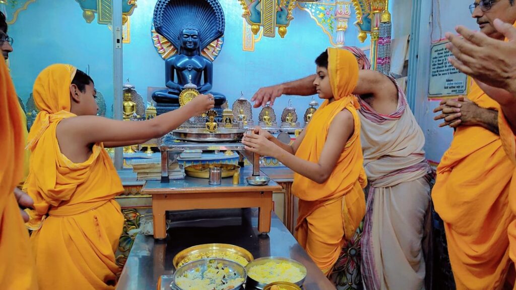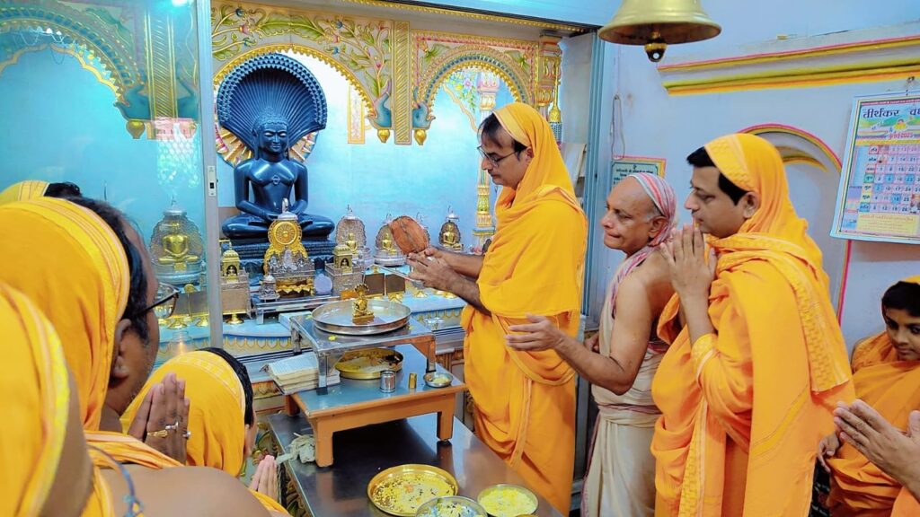 दिगंबर जैन बड़ा मंदिर में विश्वशांति हेतु 23वे तीर्थंकर पार्श्वनाथ भगवान का रजत कलशों से की गई अभिषेक/शांति धारा