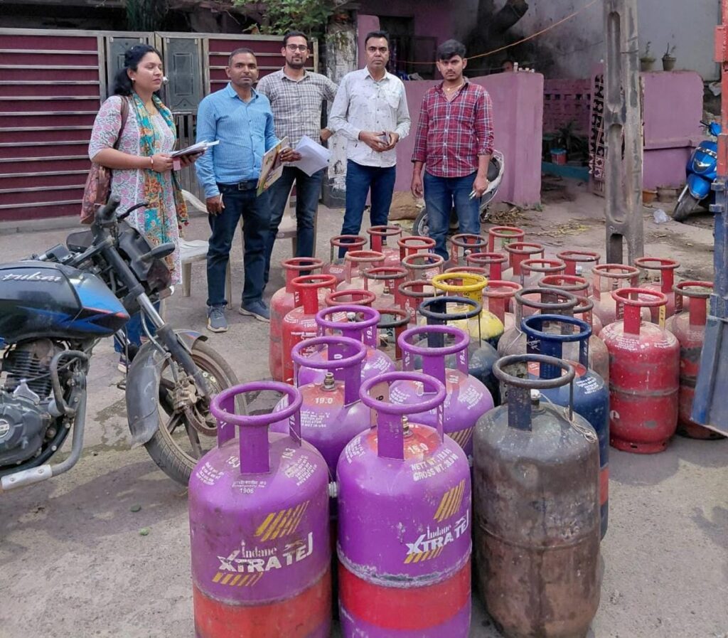 LPG सिलेंडर की कालाबाजारी पर प्रशासन का शिकंजा: घर में चल रहा था रिफिलिंग का काम, छापेमारी में भारी मात्रा में सिलेंडर जब्त