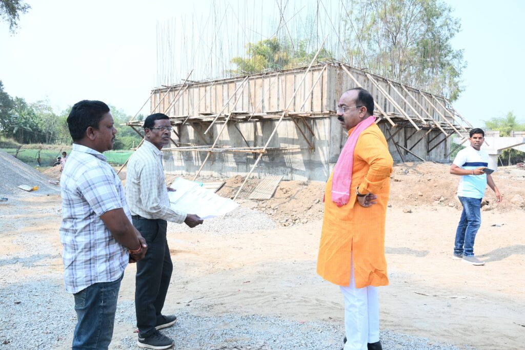 उप मुख्यमंत्री अरुण साव ने कारीडोंगरी-दरवाजा में निर्माणाधीन पुल का किया निरीक्षण