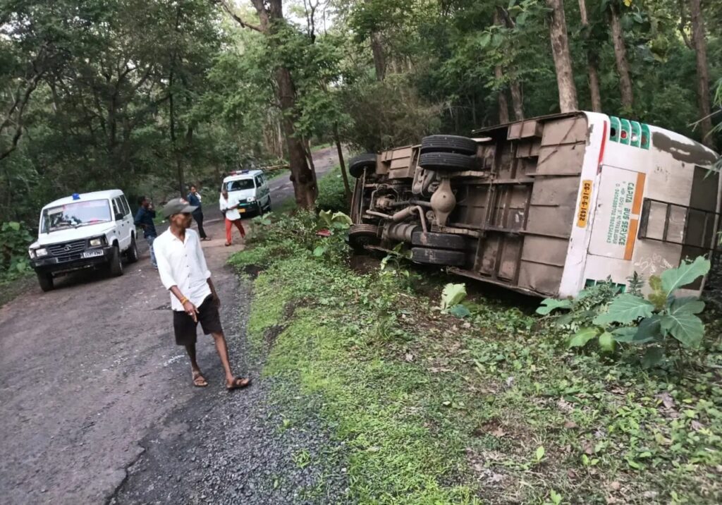 जानकारी के मुताबिक, घटना ATR क्षेत्र अंतर्गत लमनी इलाके के तिलईडबरा वनग्राम की है. जहां प्रतिदिन वनांचल मार्ग पर चलने वाली कैपिटल बस सर्विस में नए ड्राइवर आने के चलते अनियंत्रित होकर बस मोड़ पर पलट गई. घटना के वक्त बस में करीब 25 यात्री सवार थे. हादसे में दर्जनभर से अधिक यात्रियों को मामूली चोट आई. घटना के बाद अफरा-तफरी मच गई. हादसे के बाद सभी यात्री एक दूसरे को सहयोग करते हुए बस के सामने कांच को तोड़कर बाहर निकल गए. इसके बाद 17 यात्री जो मदद की गुहार लगाते हुए टीम का इंतजार कर रहे थे, उन्हें राहत सामग्री प्रदान कर एंबुलेंस के माध्यम से बिलासपुर की ओर भेजा गया.