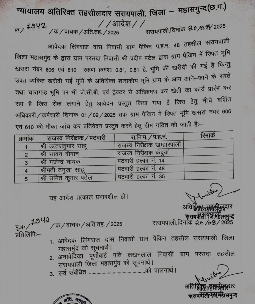 पूर्णोबाई पटेल (प्रदीप पटेल) ने खरीदी गई जमीन के बहाने सरकारी रास्ते और चारागाह को समतल करना शुरू कर दिया। जब दबंगई और रसूख के सामने जागरूक ग्रामीणों के साथ लिंगराज दास एवं युवाओं ने इस लूट के खिलाफ आवाज उठाने का साहस दिखाया और तहसीलदार के दफ्तर में ही शिकायत दर्ज कराई।