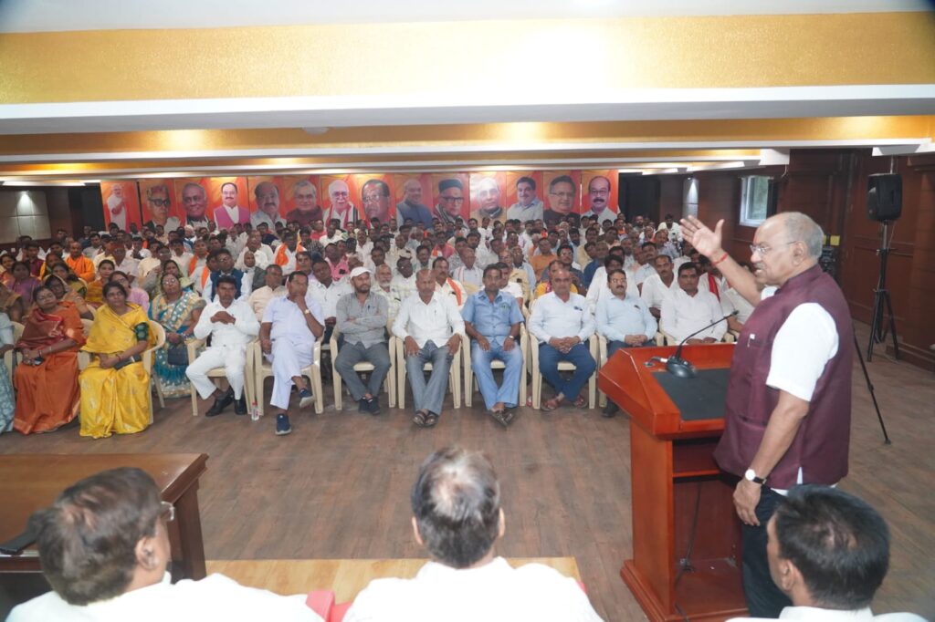 रायपुर। भारतीय जनता पार्टी संकल्प से सिध्दी अभियान के तहत पूरे देश में विभिन्न कार्यक्रम आयोजित कर केन्द्र की मोदी सरकार की 11 साल की उपलब्धियों जनता तक पहुंचाने के लिए आज भाजपा कार्यालय एकात्म परिसर में एक आवश्यक बैठक आहूत की गई। इस दौरान सांसद बृजमोहन अग्रवाल ने कहा कि संकल्प से सिध्दि अभियान के माध्यम से पार्टी के नेता और कार्यकर्ता प्रदेशभर में जाकर केंद्र की मोदी सरकार की 11 वर्षों की उपलब्धियों को आम जनता तक पहुंचाएंगे। साथ ही, कांग्रेस शासन के दौरान हुई विफलताओं की भी जानकारी घर-घर दी जाएगी। केन्द्र सरकार की योजनाएं और नीतियां समाज के अंतिम व्यक्ति तक पहुंच रही है।