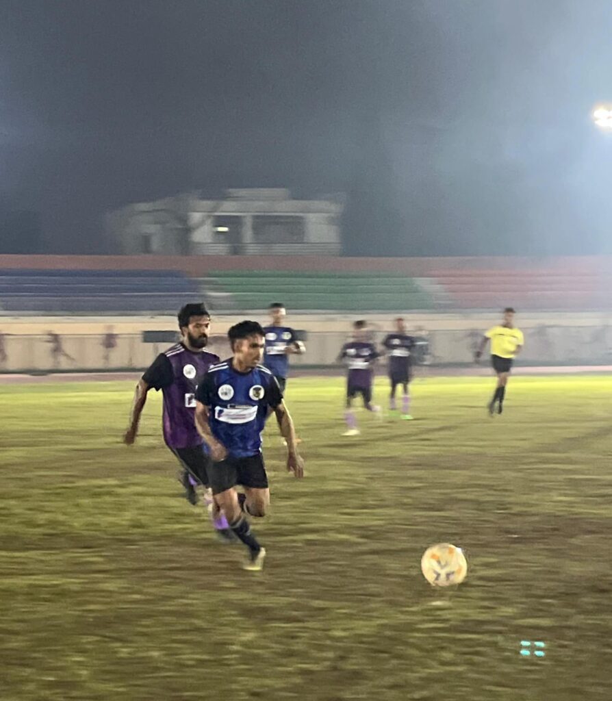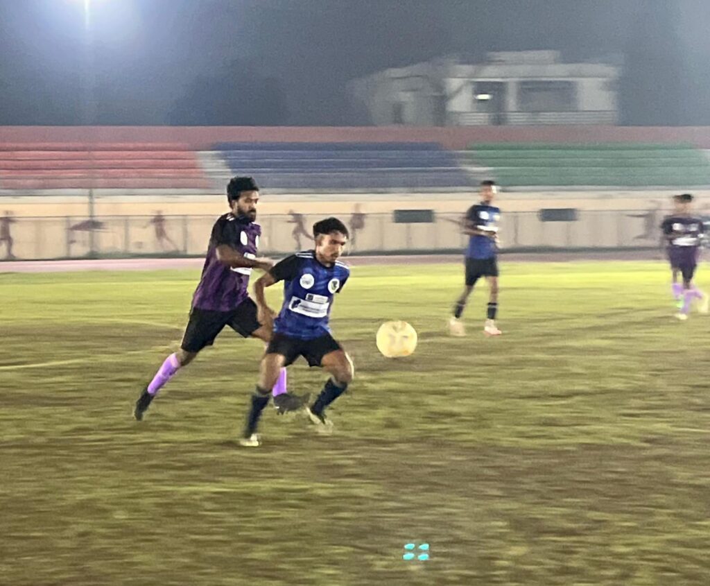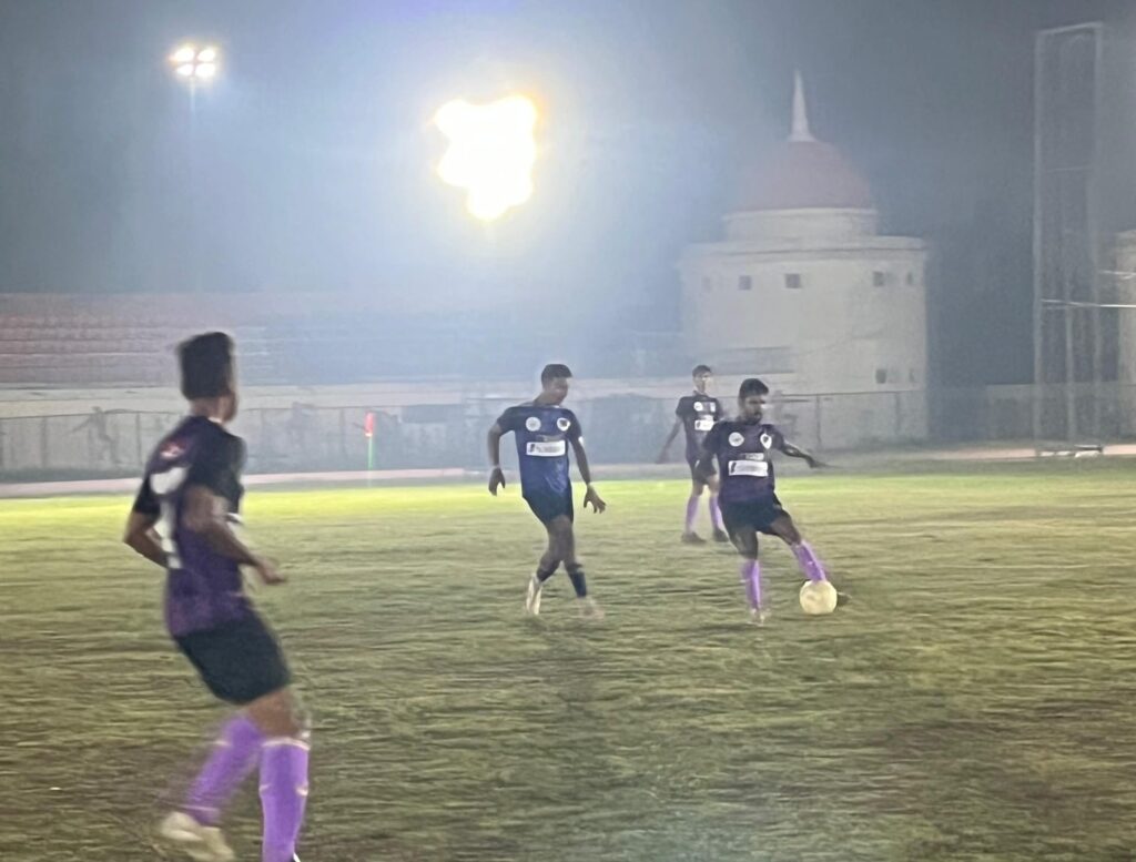 रायपुर। वीर स्पोर्ट्स क्लब के तत्वाधान में स्वामी विवेकानंद स्टेडियम कोटा रायपुर में आयोजित छत्तीसगढ़ फुटबॉल चैंपियंस लीग के चौथे राउंड में 5 रात्रिकालीन मुकाबले खेले गए। क्लब के अध्यक्ष अधिवक्ता प्रवीण जैन ने जानकारी देते हुए बतलाया दिन का पहला मैच में सराफत लायंस और बोर्नियो कैपिटल के बीच हुआ। 8वें मिनट में शिवम साहू ने पहला गोल किया, 12वें मिनट में प्रणय ध्रुव ने बढ़त को दोगुना किया और 33वें मिनट में राजेश कुमार ने तीसरा गोल दागा। बोर्नियो एफसी की ओर से शिवेश द्विवेदी ने 44वें मिनट में एक गोल किया, लेकिन मैच सराफत लायंस के पक्ष में 3-1 से जीत चला गया।