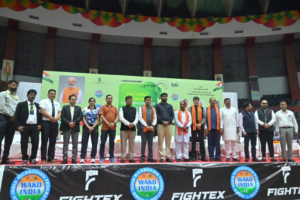 रायपुर। वाको इंडिया किकबॉक्सिंग फेडरेशन के मार्गदर्शन में छत्तीसगढ़ किकबॉक्सिंग एसोसिएशन के द्वारा राष्ट्रीय किकबॉक्सिंग प्रतियोगिता 2025 का आयोजन रायपुर के बलबीर सिंह जुनेजा इंडोर स्टेडियम में दिनांक 16 जुलाई से 20 जुलाई तक किया जा रहा है।