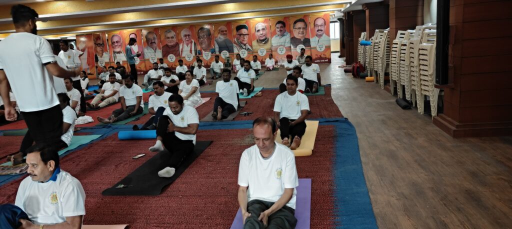 11वां अंतरराष्ट्रीय योग दिवस पर जवाहर नगर मंडल के कार्यकर्ताओं ने एकात्म परिसर में किया सामूहिक योगाभ्यास