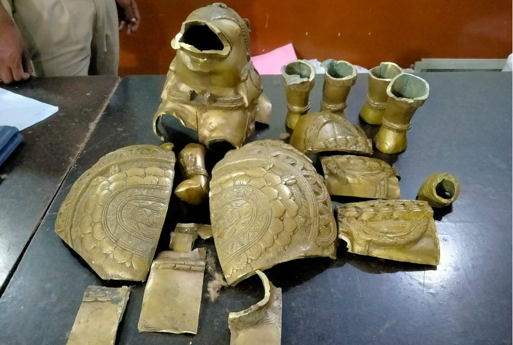 पुलिस जांच में सामने आया कि आरोपियों ने इस मूर्ति को बेचकर नशे के इंजेक्शन खरीदने की साजिश रची थी। चार आरोपियों – शरीफ उल्ला खान, मोहम्मद राजुल अंसारी, इमरान और साकिर हुसैन – को पुलिस ने गिरफ्तार किया है। आरोपियों ने पीतल की मूर्ति कबाड़ी इमरान मलिक को मात्र 7,200 रुपये में बेच दी थी।