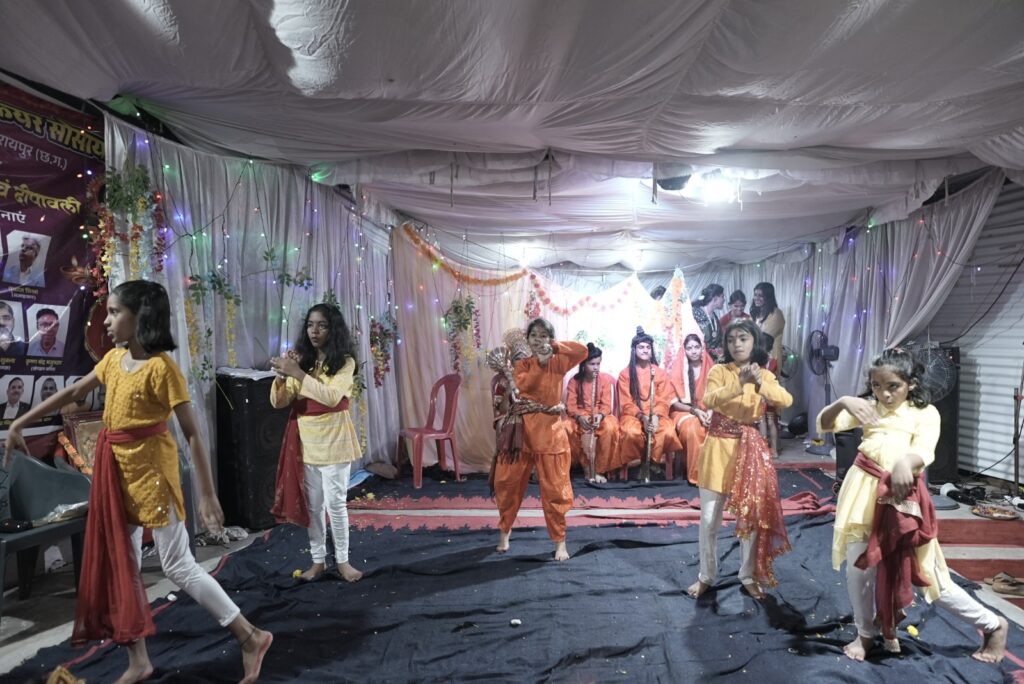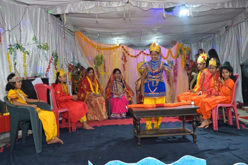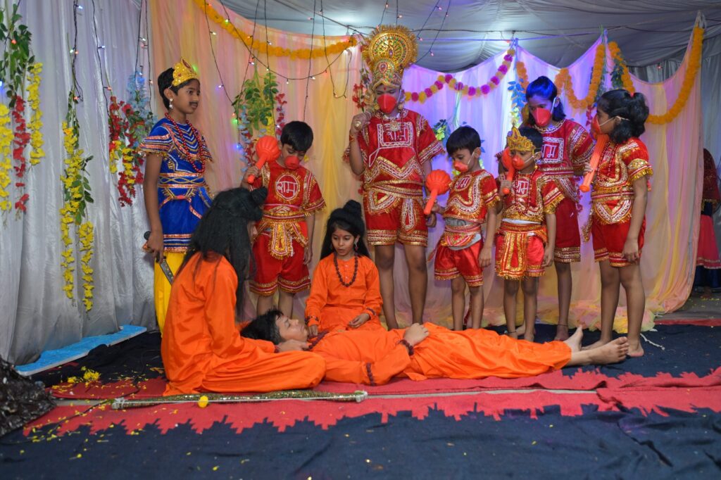 रामलीला मंचन में बच्चों ने उत्कृष्ट अभिनय प्रस्तुत कर रामायण के आदर्शों को जीवंत कर दिया। मुख्य भूमिकाओं में श्रीराम – अंतरिक्ष, लक्ष्मण – अभिनव (अंश), हनुमान – अंश, सीता – समीक्षा एवं रिया, राजा दशरथ एवं जनक – मयूर, बाली – कोशिका, सुग्रीव – अंशिका (टीशा), विभीषण – अर्णव, ऋषि – वंशिका एवं समीक्षा, राक्षस सैनिक तथा नल-नील – वंश एवं विवान, वानर सैनिक – अथर्व यादव, सूर्पनखा – आकृति (टिया), संदेश वाहक दासी – श्रेया एवं आव्या, मरीच एवं राजा – आध्या साहू, बाल राम-लक्ष्मण, भारत-शत्रुघ्न – गीतांश एवं रुद्र और रावण – सजल शामिल थे। तकनीकी सहयोग और तैयारी में आद्या सिंह, सजल, समीक्षा, रिया और मयूर ने विशेष सहयोग प्रदान किया।