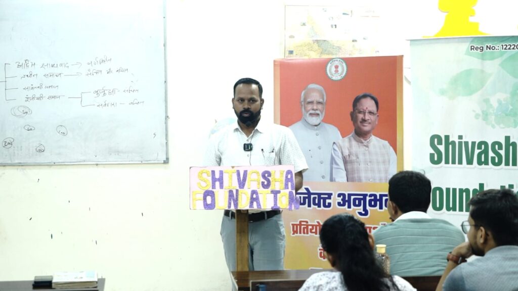 रायपुर। रायपुर जिले में संचालित अभिनव पहल प्रोजेक्ट “अनुभव” के अंतर्गत योग भवन, फुंडहर में प्रतियोगी परीक्षाओं की तैयारी कर रहे छात्रों के लिए एक विशेष शैक्षणिक सत्र आयोजित किया गया। इस सत्र में सहायक श्रम आयुक्त देवेन्द्र देवांगन ने छात्रों को समाजशास्त्र विषय की बारीकियों से अवगत कराया।