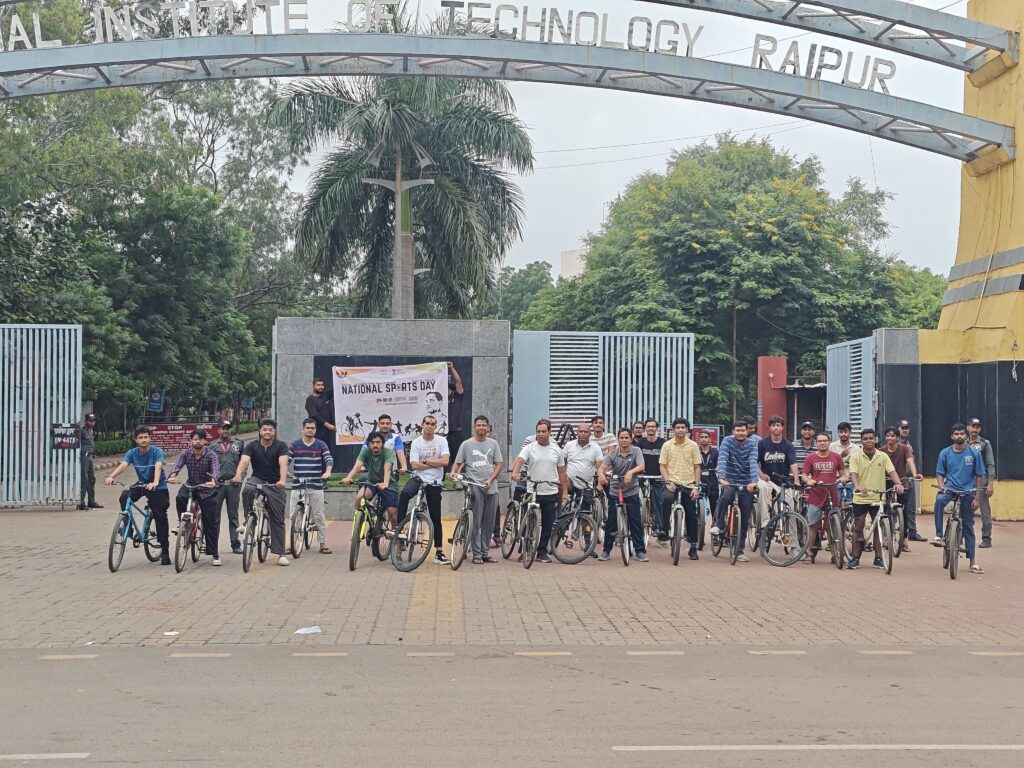 रायपुर। राष्ट्रीय प्रौद्योगिकी संस्थान (एनआईटी) रायपुर ने राष्ट्रीय खेल दिवस के अवसर पर रविवार को ‘संडे ऑन साइकिल’ साइक्लिंग रैली का आयोजन किया। इस कार्यक्रम का आयोजन संस्थान के खेल विभाग और शौर्य – खेल समिति की ओर से किया गया।
