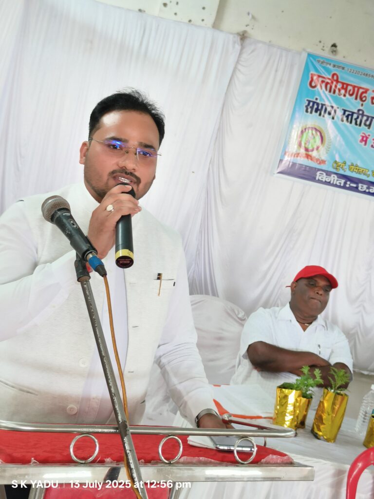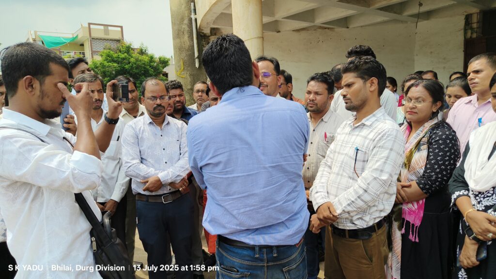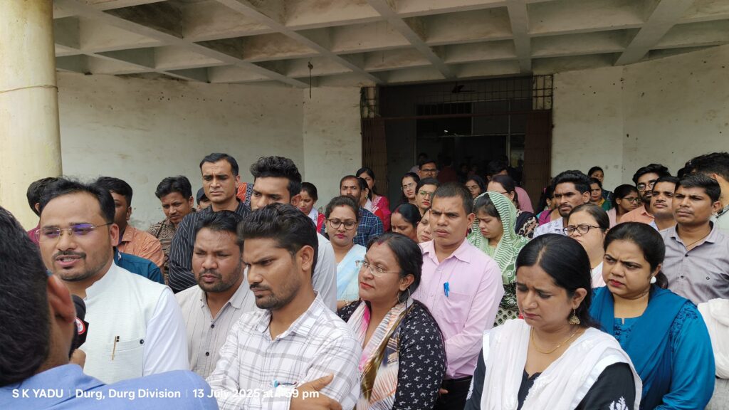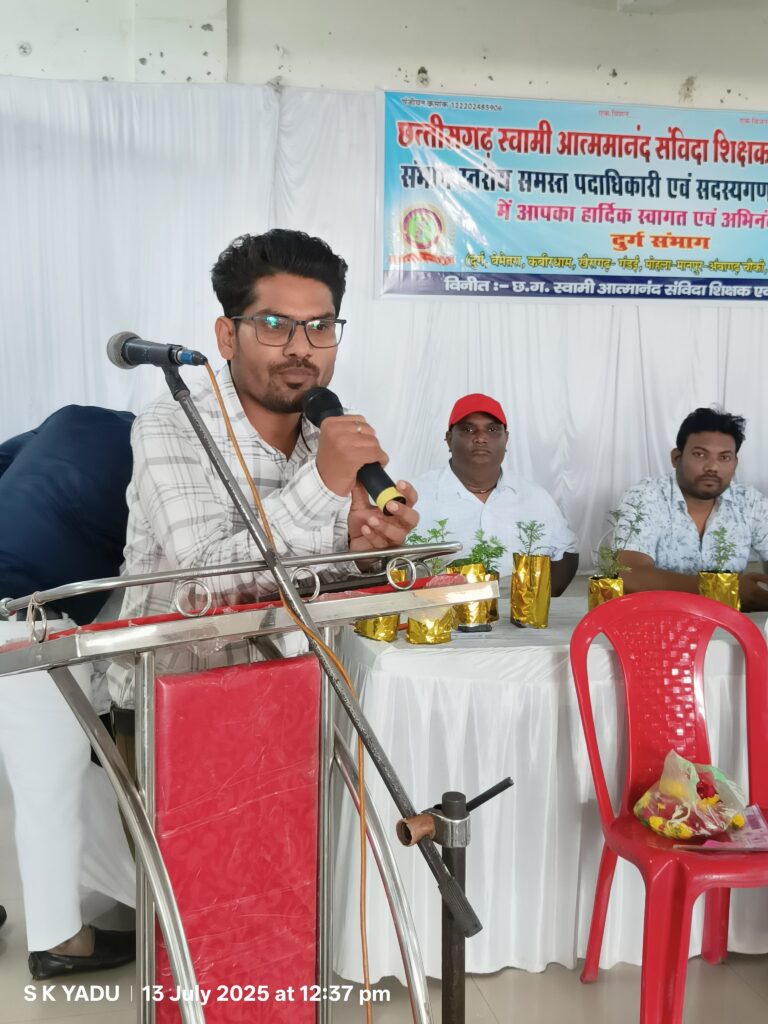 दुर्ग। छत्तीसगढ़ स्वामी आत्मानंद संविदा शिक्षक एवं कर्मचारी संघ की दुर्ग संभाग स्तरीय बैठक आज दिनांक 13 जुलाई 2025 को दुर्ग में प्रदेश अध्यक्ष दुर्योधन यादव के नेतृत्व में सम्पन्न हुई। बैठक का आयोजन संभाग अध्यक्ष नवी मोजेश, प्रदेश कार्यकारिणी से सतीश कुमार पटेल एवं उनकी टीम द्वारा किया गया। बैठक में दुर्ग, बेमेतरा, खैरागढ़ सहित विभिन्न जिलों से आए 200 से अधिक संविदा शिक्षकों एवं कर्मचारियों ने भागीदारी की।