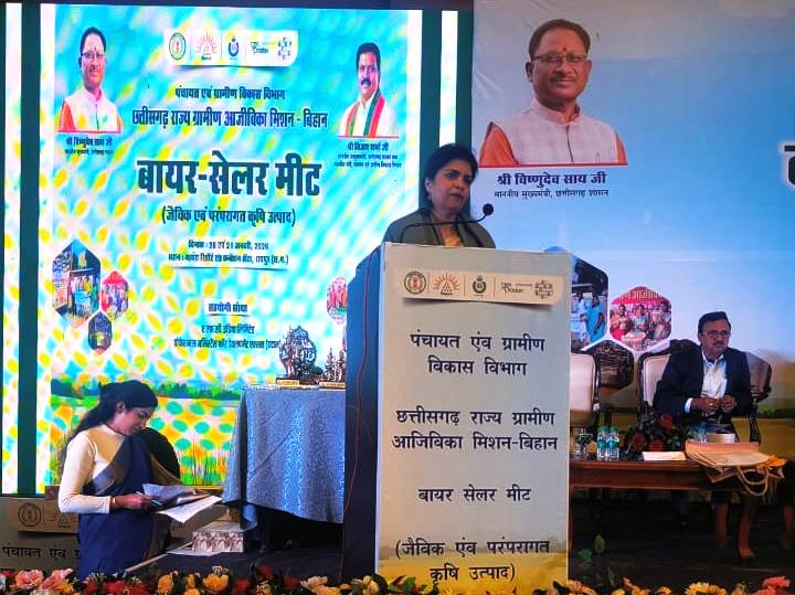 रायपुर। नवा रायपुर के एक निजी होटल में आयोजित दो दिवसीय बायर-सेलर मीट 2026 में राज्य के बिहान महिला समूहों और इनके एफपीओ को जर्बदस्त रिस्पॉन्स मिला है, इससे महिला समूहों का मनोबल बढ़ा है। पंचायत एवं ग्रामीण विकास विभाग द्वारा आयोजित यह बायर-सेलर मीट 20 एवं 21 जनवरी को नया रायपुर स्थित निजी होटल में आयोजित हुई। इस दौरान खरीददार और महिला समूहों के प्रतिनिधियों के बीच उनके उत्पादों की मात्रा, क्वालिटी और मार्केेटिंग को लेकर कई सहमतियां भी बनी।