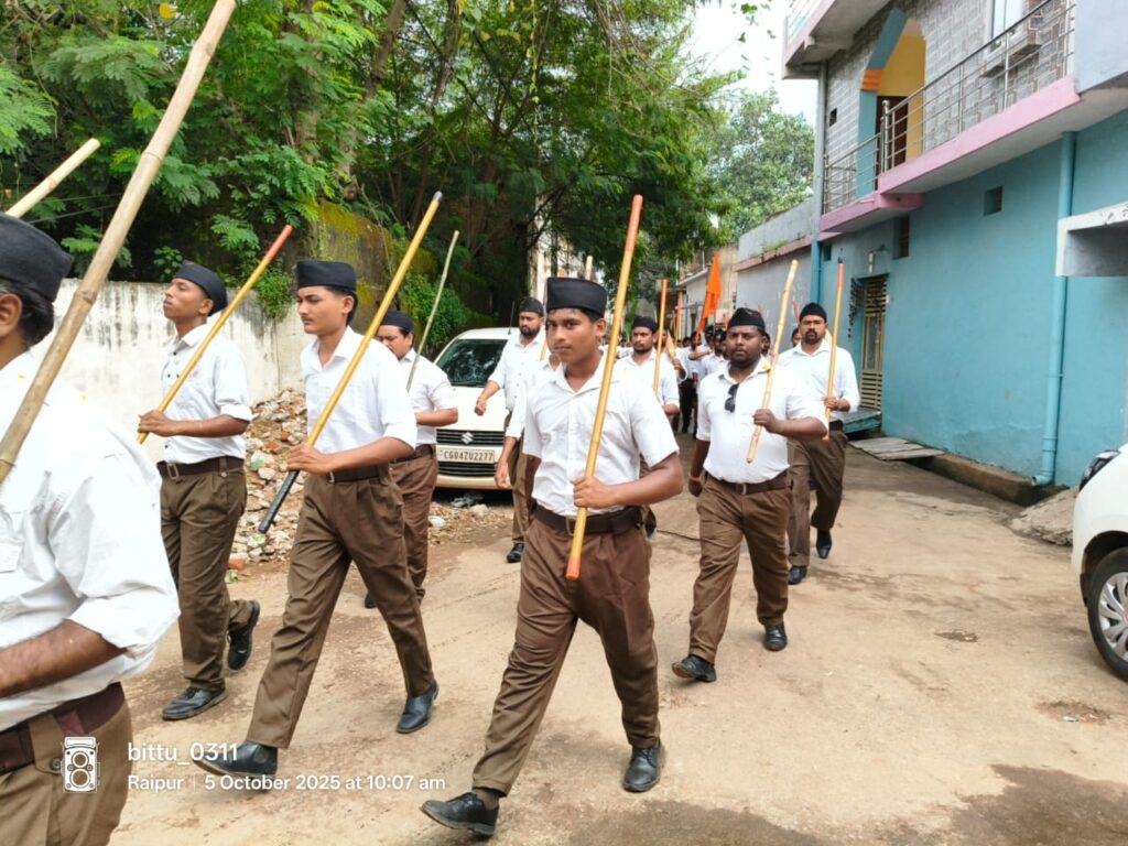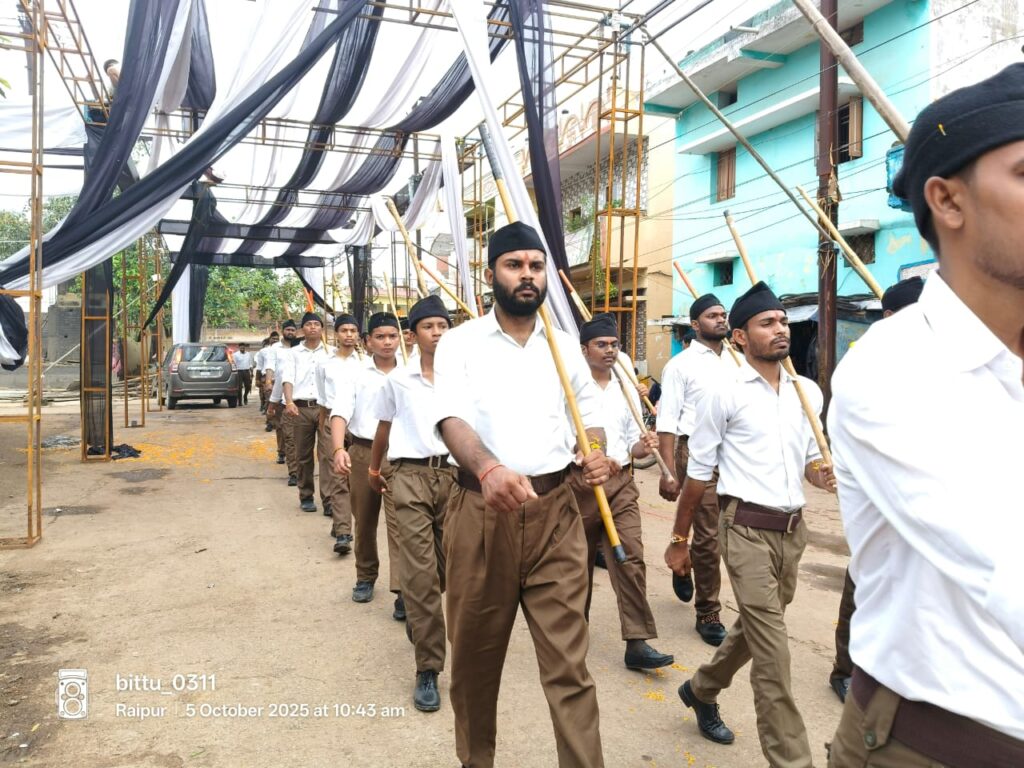 रायपुर।  राष्ट्रीय स्वयंसेवक संघ, रायपुर महानगर के अंतर्गत विजयादशमी के अवसर पर सभी नगरों में गत 25 सितबर से बस्तीश: चल रहे उत्सव और संचलन का कार्यक्रम पूरे उमंग और जोश के साथ चल रहा है। आगामी 15 अक्टूबर तक चलनेवाले उत्सव कार्यक्रम के 10 वें दिन 37 स्थान पर उत्साह और जोश से लबरेज स्वयंसेवकों ने पूरे शान के साथ पथ संचलन निकाला। रायपुर शहर में कई बस्तियों में यह कार्यक्रम प्रातः 7 बजे से तो कई जगह संचलन रात्रि 8 बजे तक चला। इस दौरान स्वयंसेवकों का उत्साह जहाँ चरम पर था तो वहीँ वक्ताओं में गर्व और संयम का संगम देखा जा सकता था।