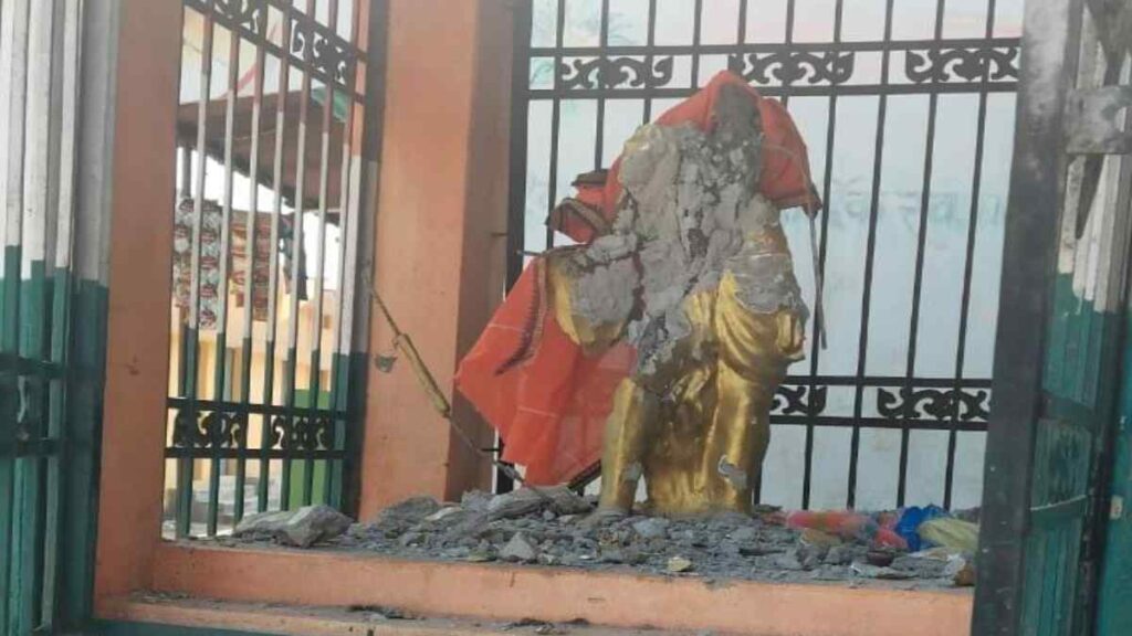 महात्मा गांधी की मूर्ति खंडित होने से ग्रामीणों में आक्रोश, आरोपी के खिलाफ कार्रवाई की मांग